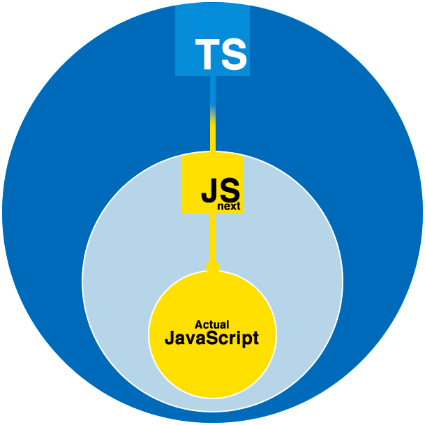 Havia (e continuará a ter) muitos competidores em alguns compiladores de sintaxe para o JavaScript. TypeScript é diferente deles isso por que o Seu JavaScript é o TypeScript. Aqui está um diagrama: